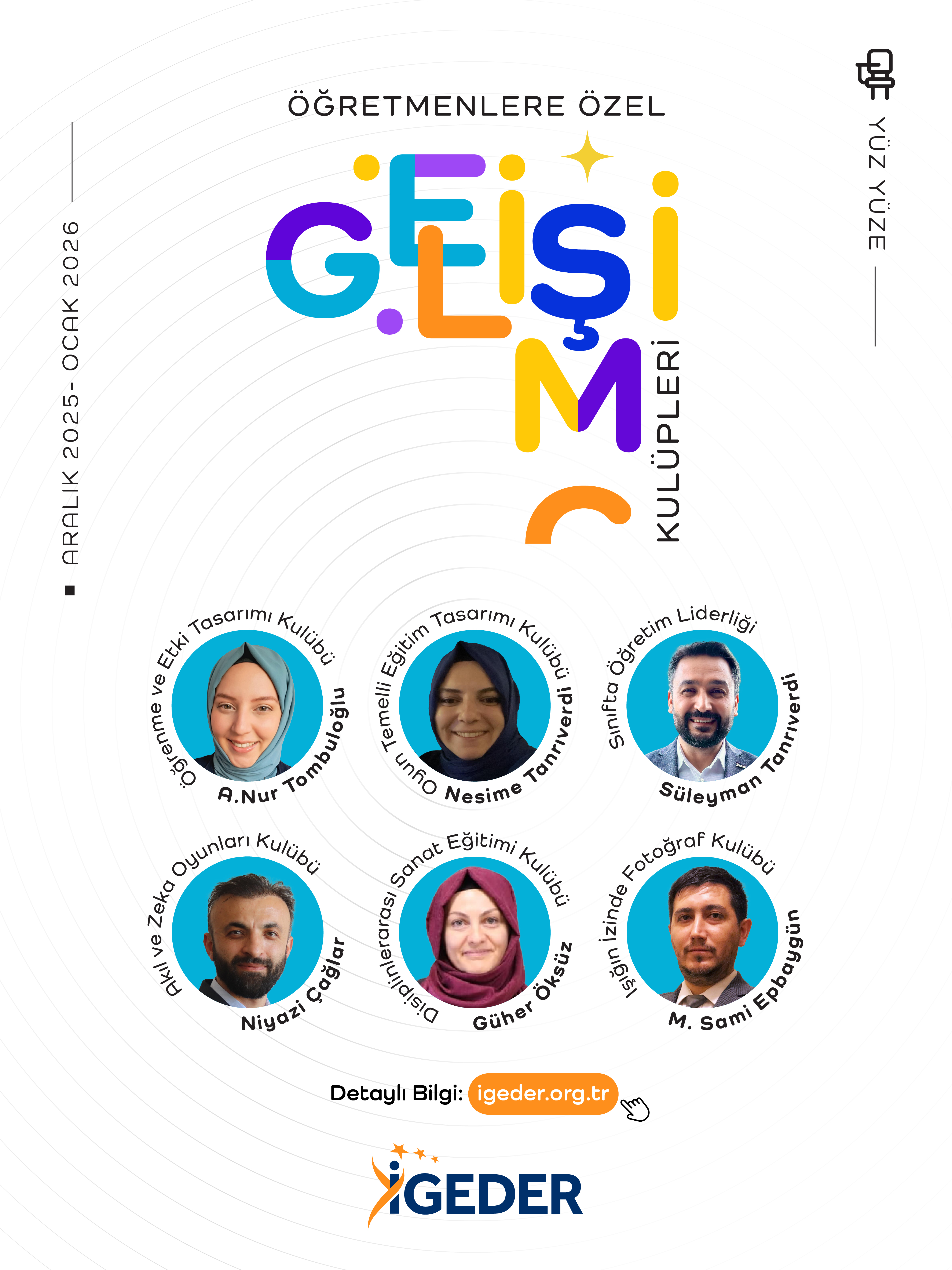 2 Hafta • Cuma Günleri | 19 Aralık–26 Aralık 2025 | ⏰ 17.00–19.00 | 📍 İGEDER (Katılımcılar: Tüm Öğretmenler ve Öğretmen Adayları