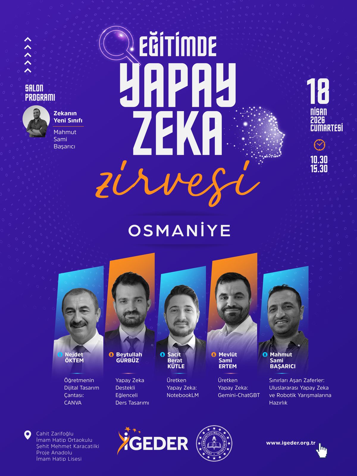 Eğitim dünyasının sınırlarını genişletmek ve yapay zeka teknolojilerinin sınıflarımızdaki yerini, insanı odağa alarak yeniden tanımlamak için 18 Nisan 2026'da Osmaniye'de buluşuyoruz.
